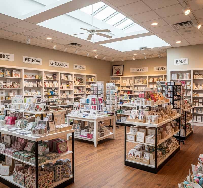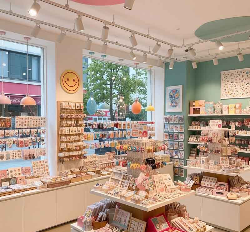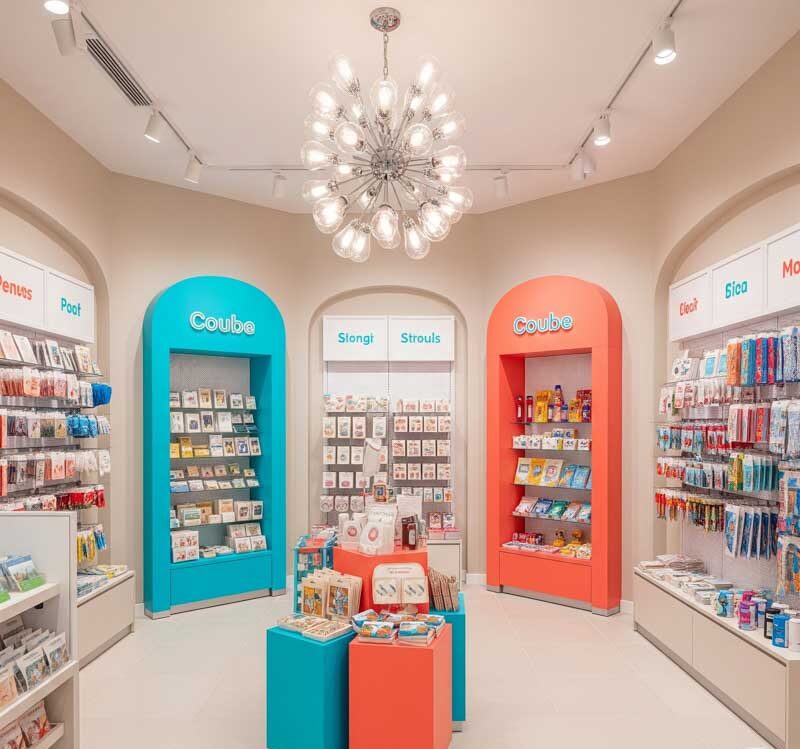 Sắp xếp khoa học giúp khách hàng dễ lựa chọn sản phẩm theo chủ đề. Kệ treo, kệ tầng hoặc quầy mini linh hoạt giúp tối ưu không gian.