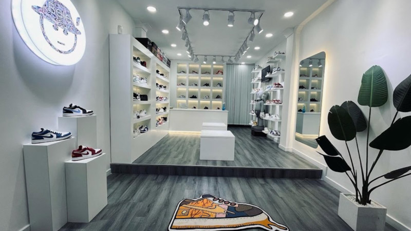 Khu vực thử giày và dịch vụ khách hàng:Một góc thử giày êm ái, có gương soi và ghế ngồi thoải mái sẽ tạo cảm giác chuyên nghiệp và chiều chuộng khách. Đây cũng là điểm nhấn giúp tăng tỷ lệ chốt đơn.
