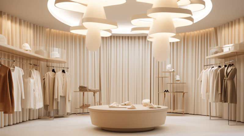 Đối với thời trang cao cấp, khách hàng thường có xu hướng kỳ vọng về không gian và sự chuyên nghiệp hơn. Vì vậy shop cần chú trọng đến việc bố trí không gian thoải mái, đầu tư ánh sáng và decor để tăng tính chuyên nghiệp hơn. [caption id="attachment_22609" align="aligncenter" width="800"]